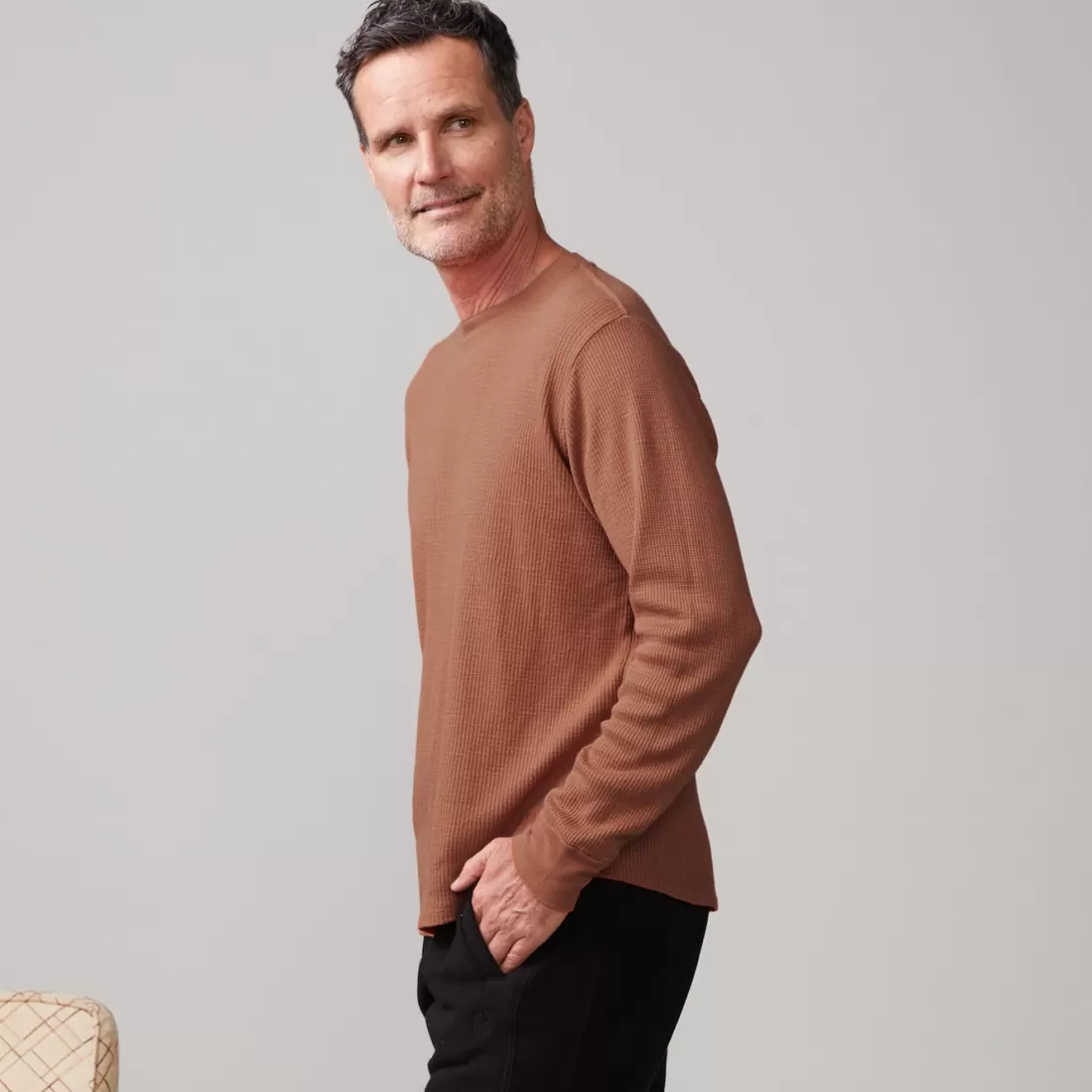 MONROW Men’s Tops | Mens Sale*Thermal Long Sleeve Crew CARAMEL