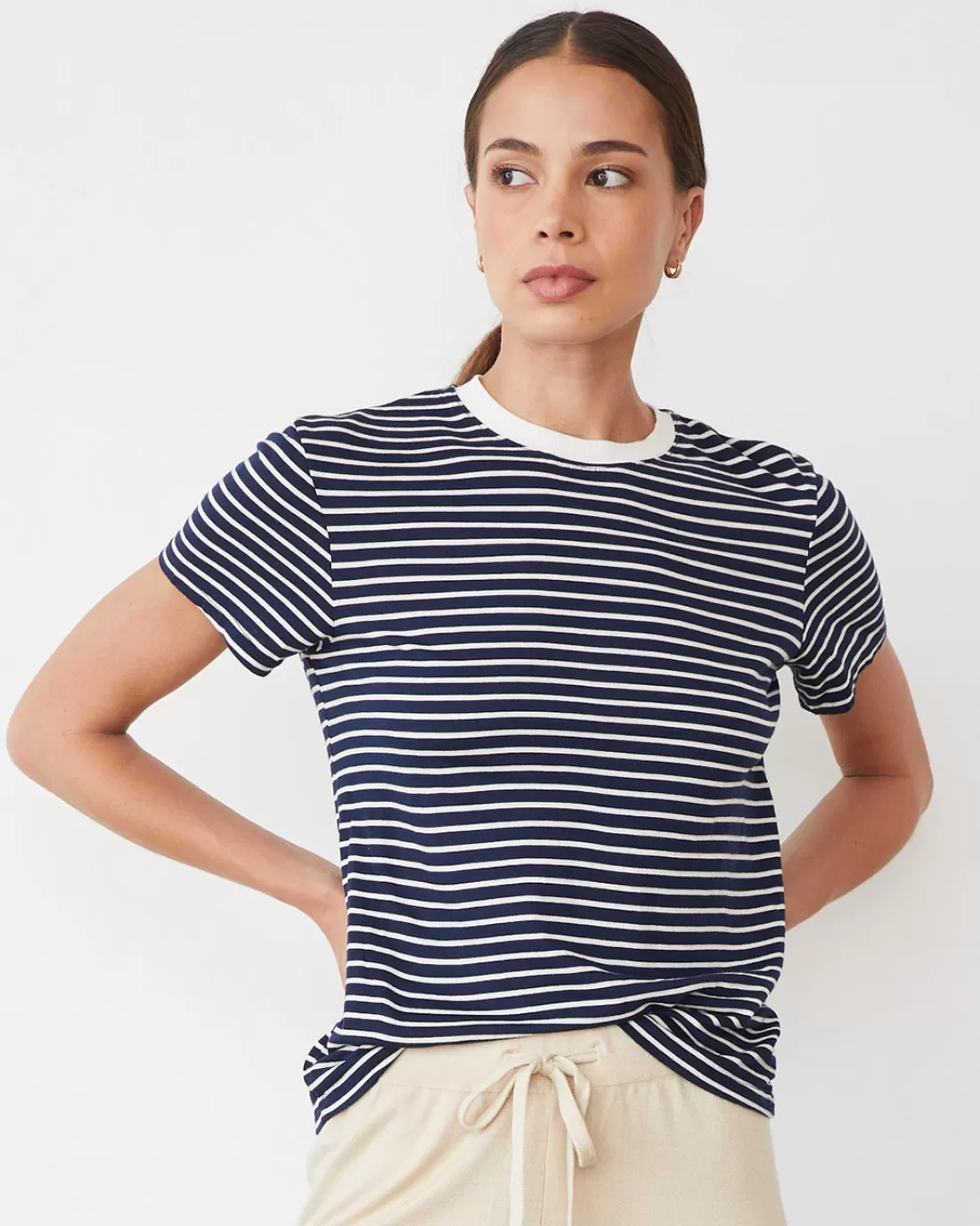Our Stripe Basic Crew Neck Tee is a little bit nautical, a little bit tomboy.