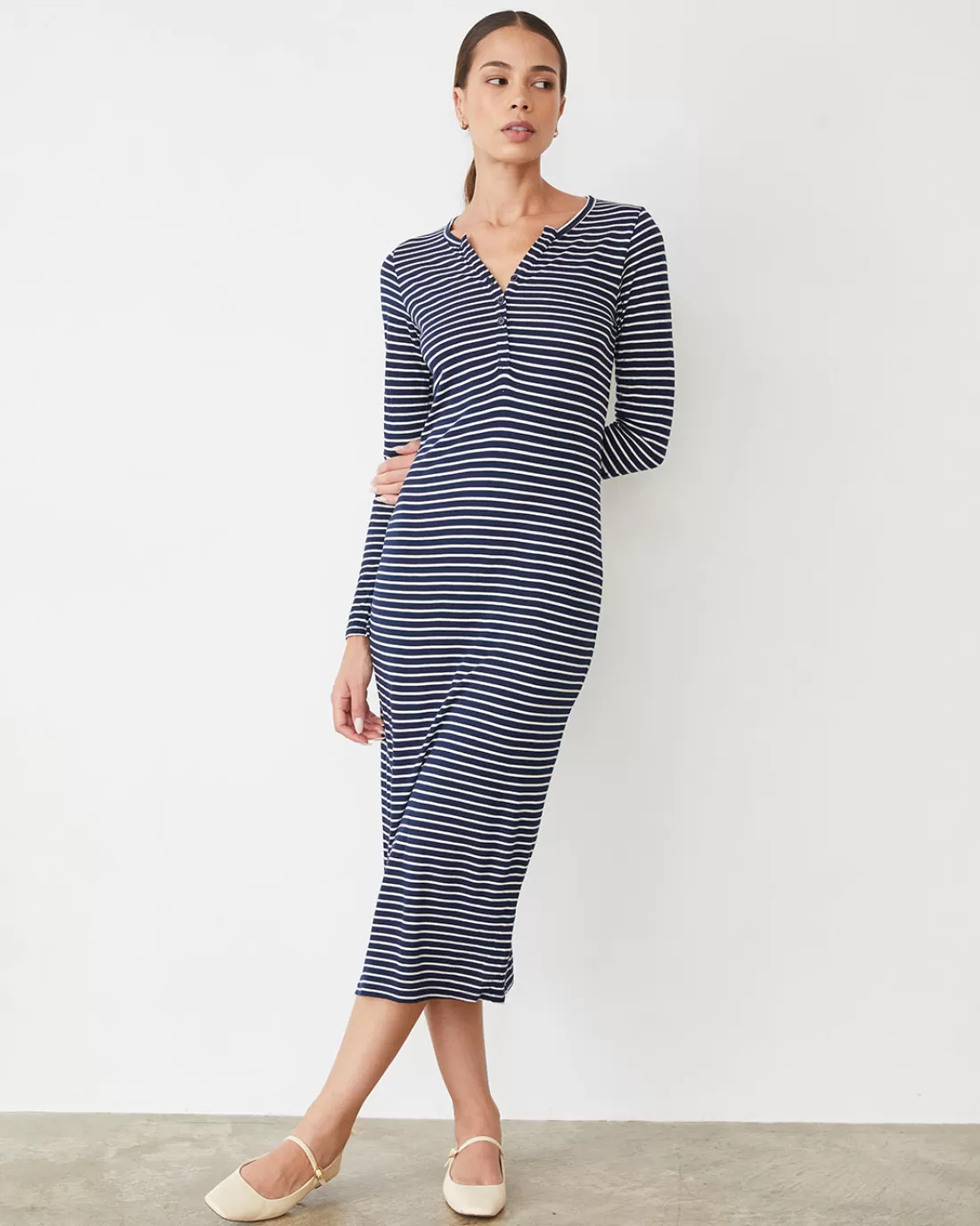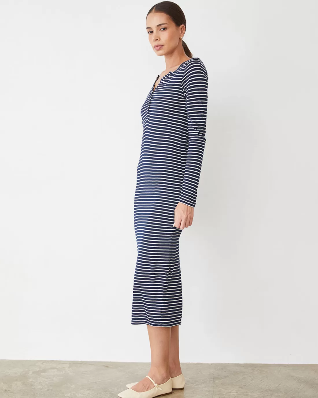 Embrace coastal life with our Stripe Henley Dress, a perfect blend of comfort and style.